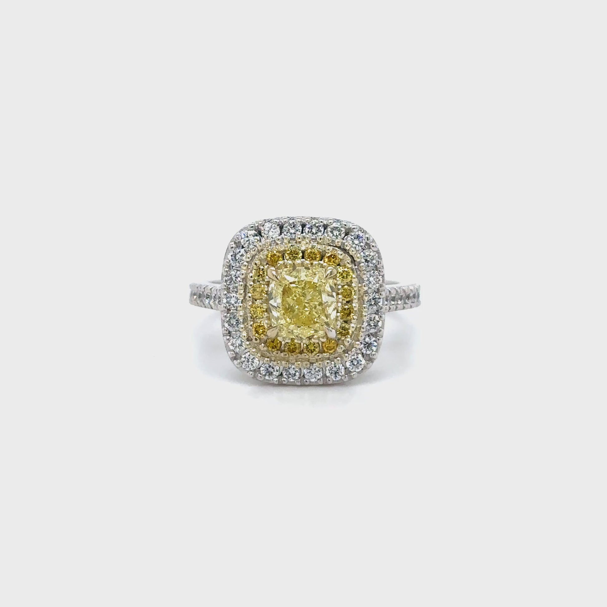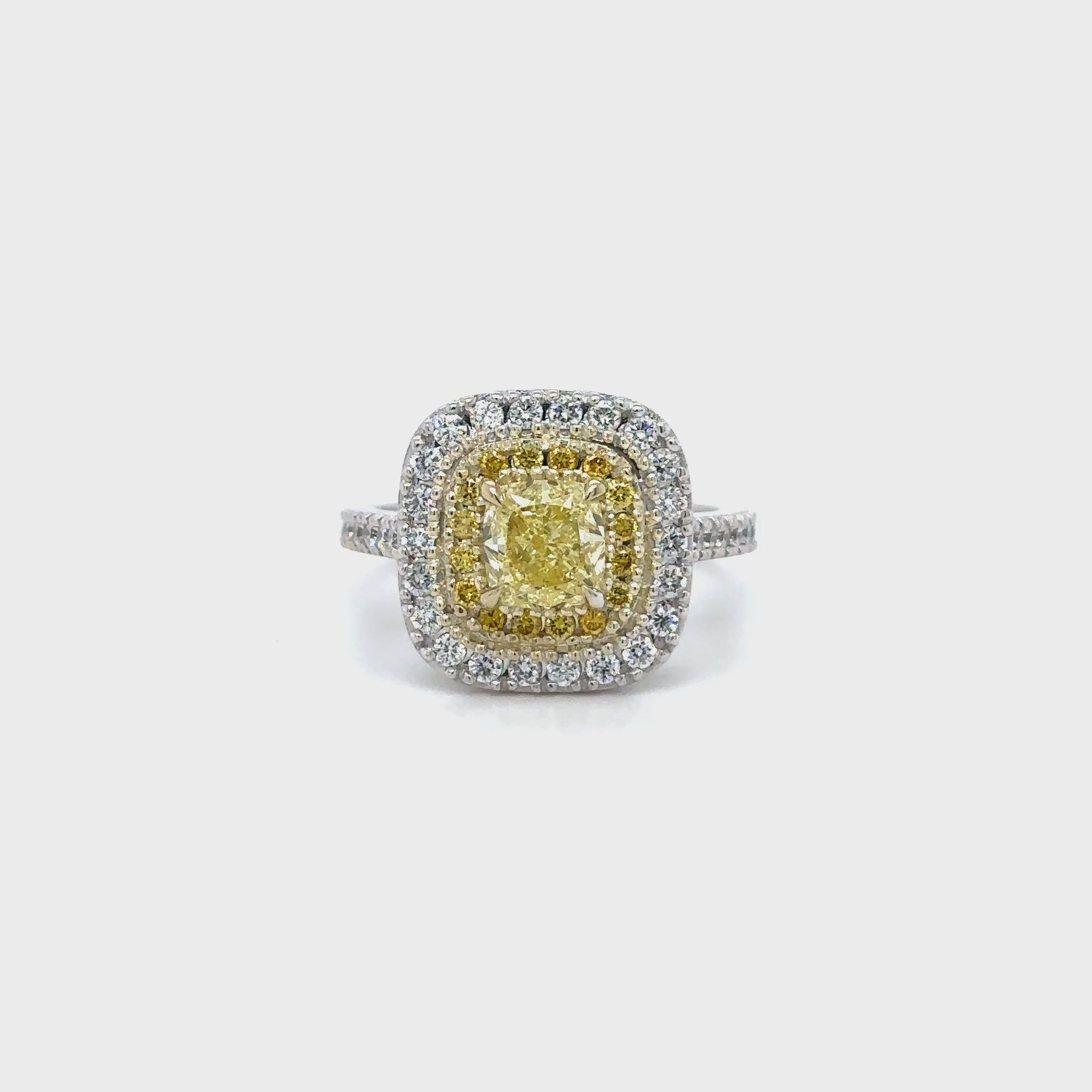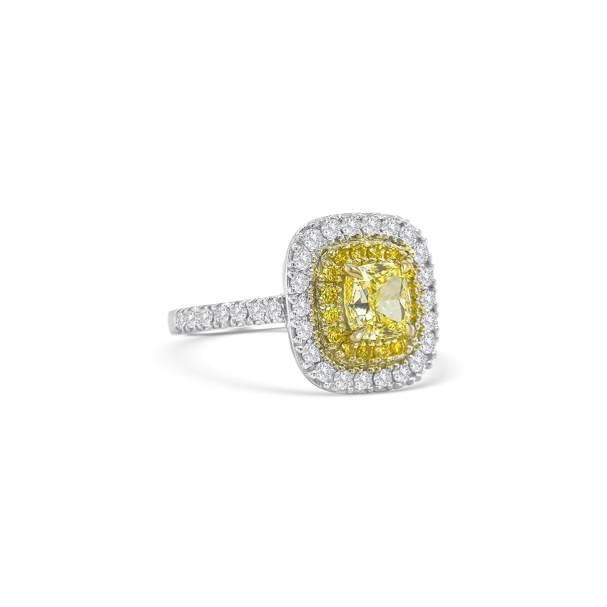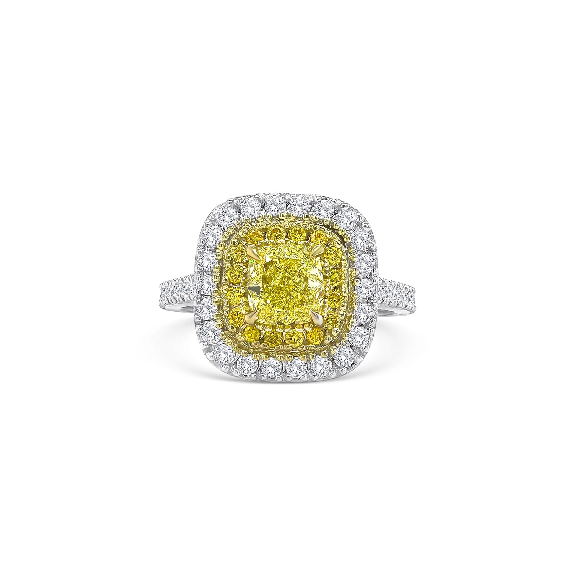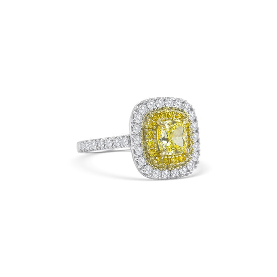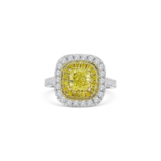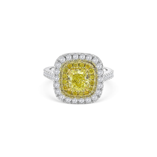 Fancy Yellow Cushion and Double Halo Diamond Ring