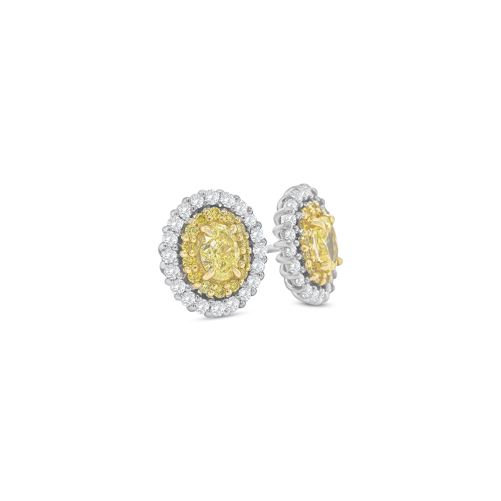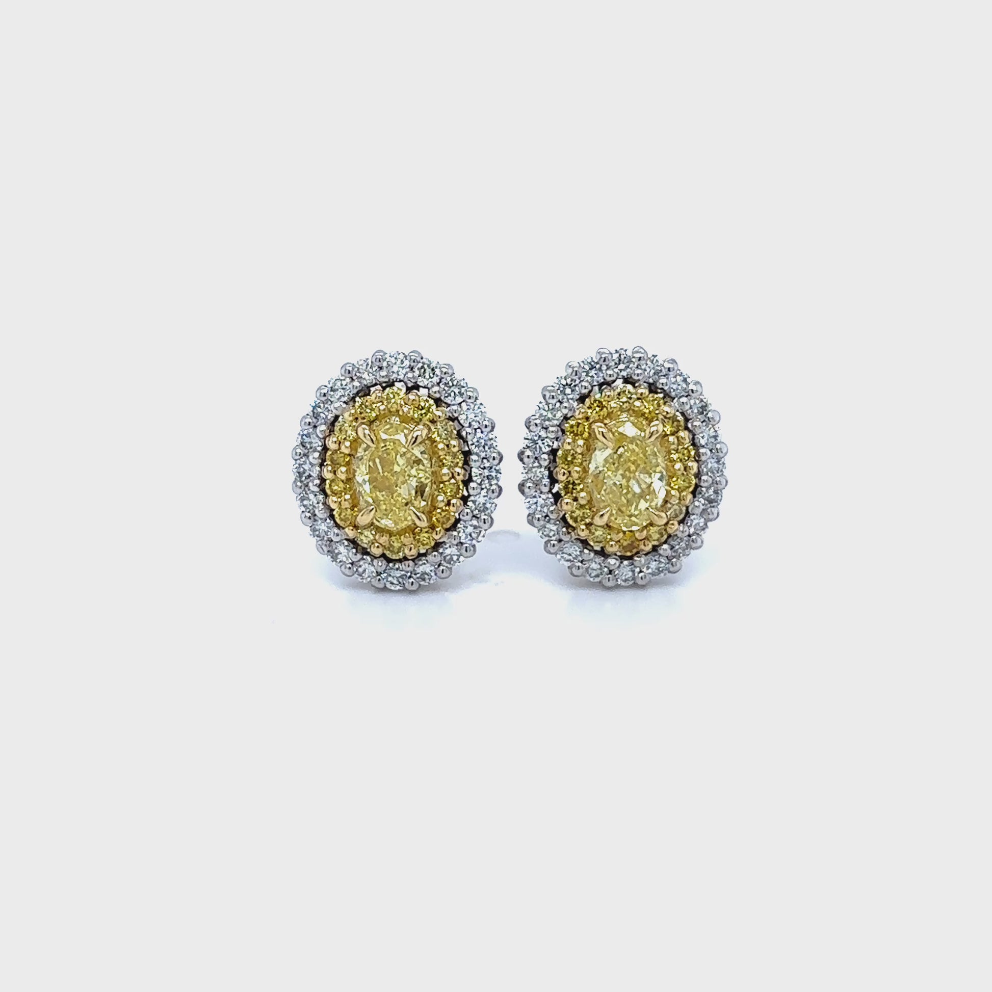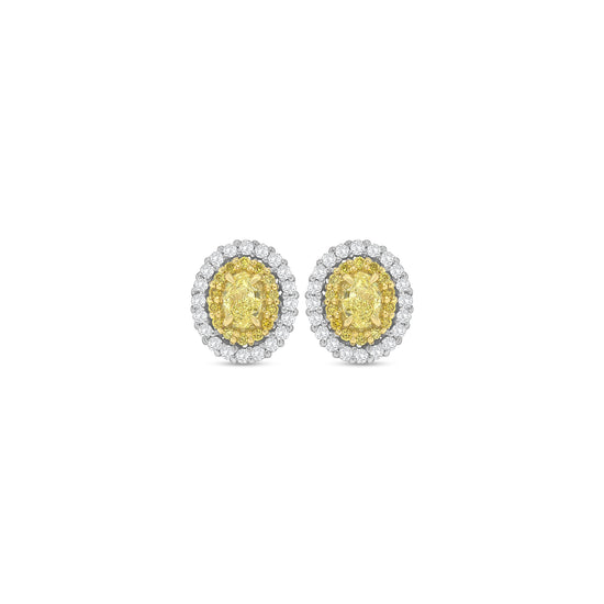 Fancy Yellow Oval Diamond Halo Stud Earring