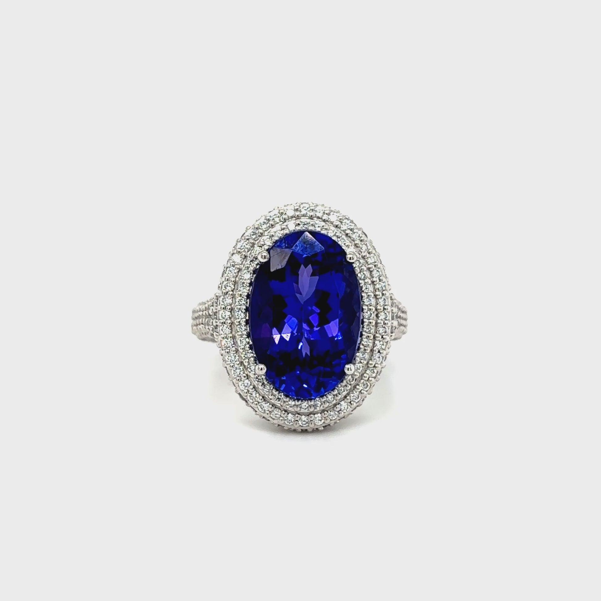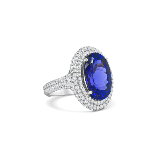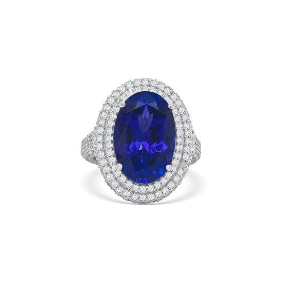 Oval Tanzanite & Double Halo Diamond Ring