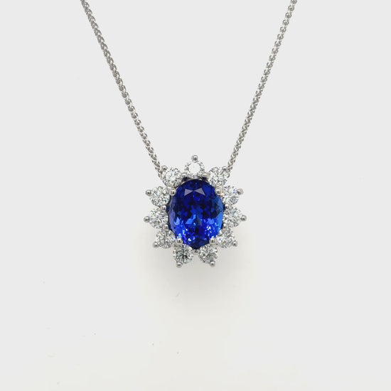 Oval Tanzanite & Floral Diamond Pendant