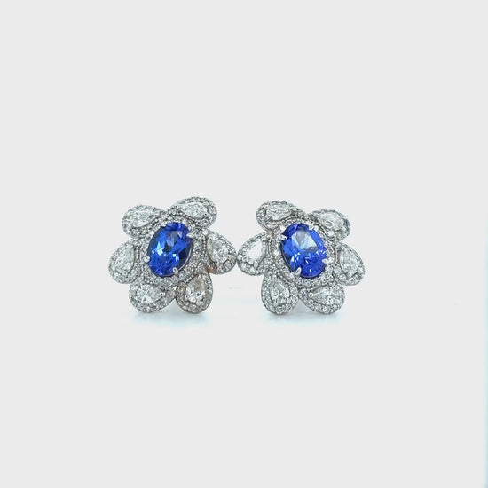 Oval Tanzanite & Multi-Shape Floral Diamond Stud Earrings