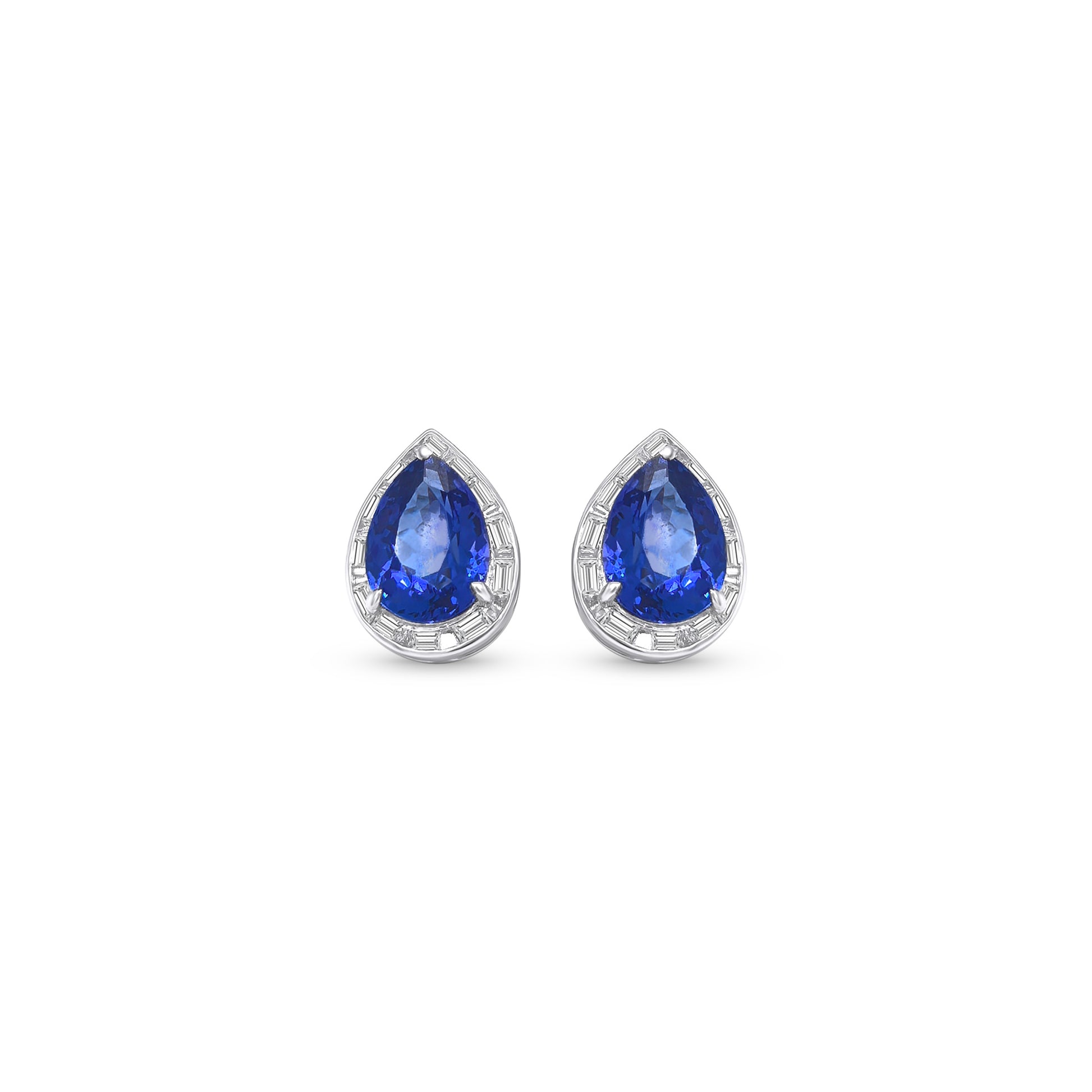 Pear Shape Tanzanite & Baguette Diamond Halo Stud Earrings