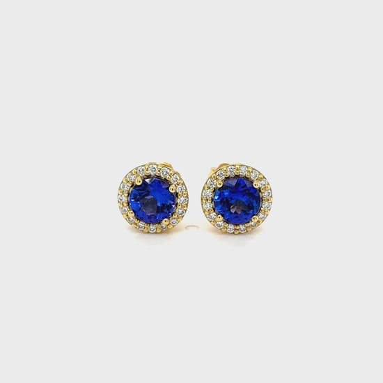 Round Tanzanite & Diamond Halo Stud Earrings