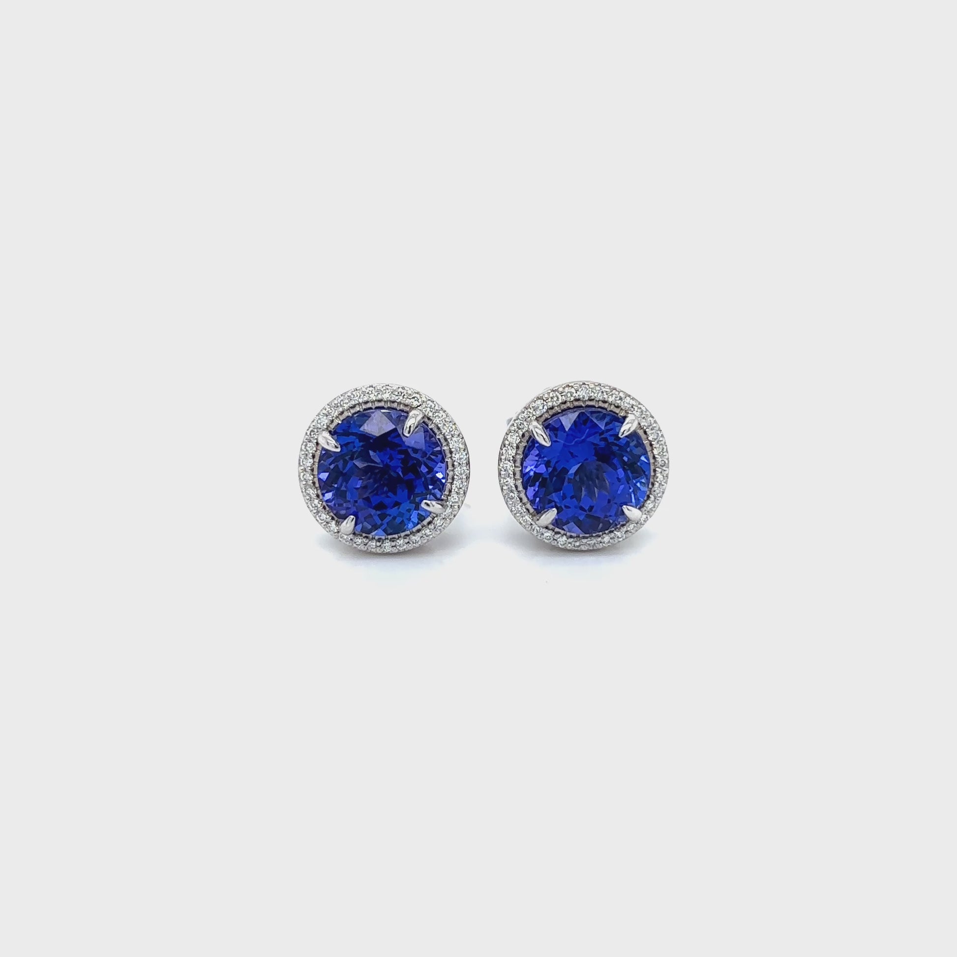 Round Tanzanite & Diamond Halo Stud Earrings