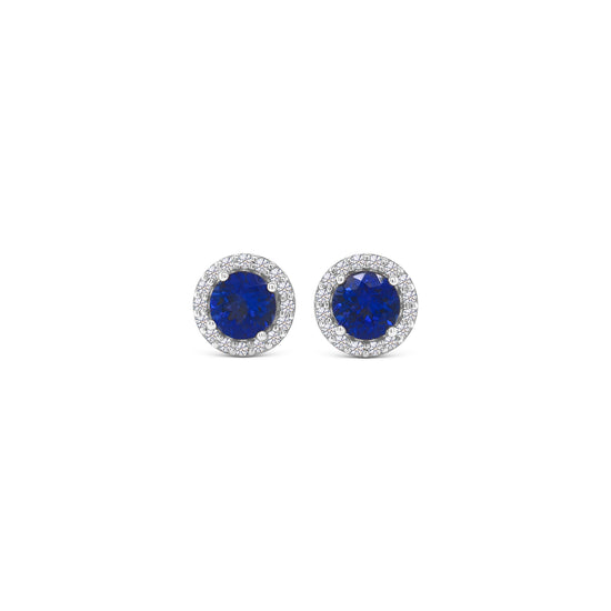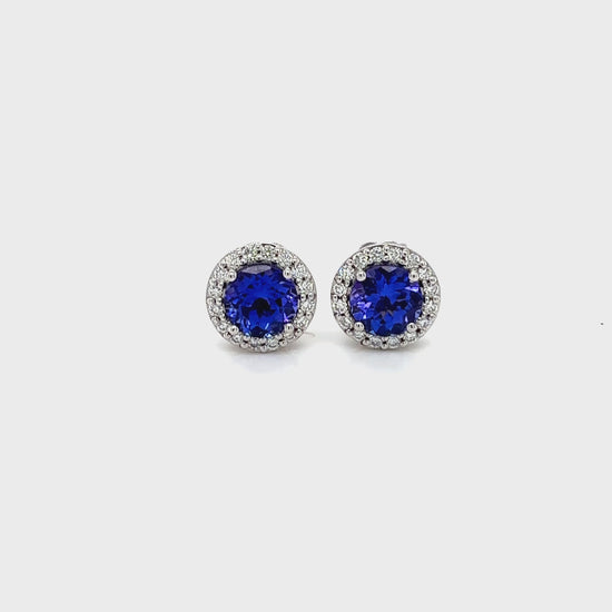 Round Tanzanite & Diamond Halo Stud Earrings