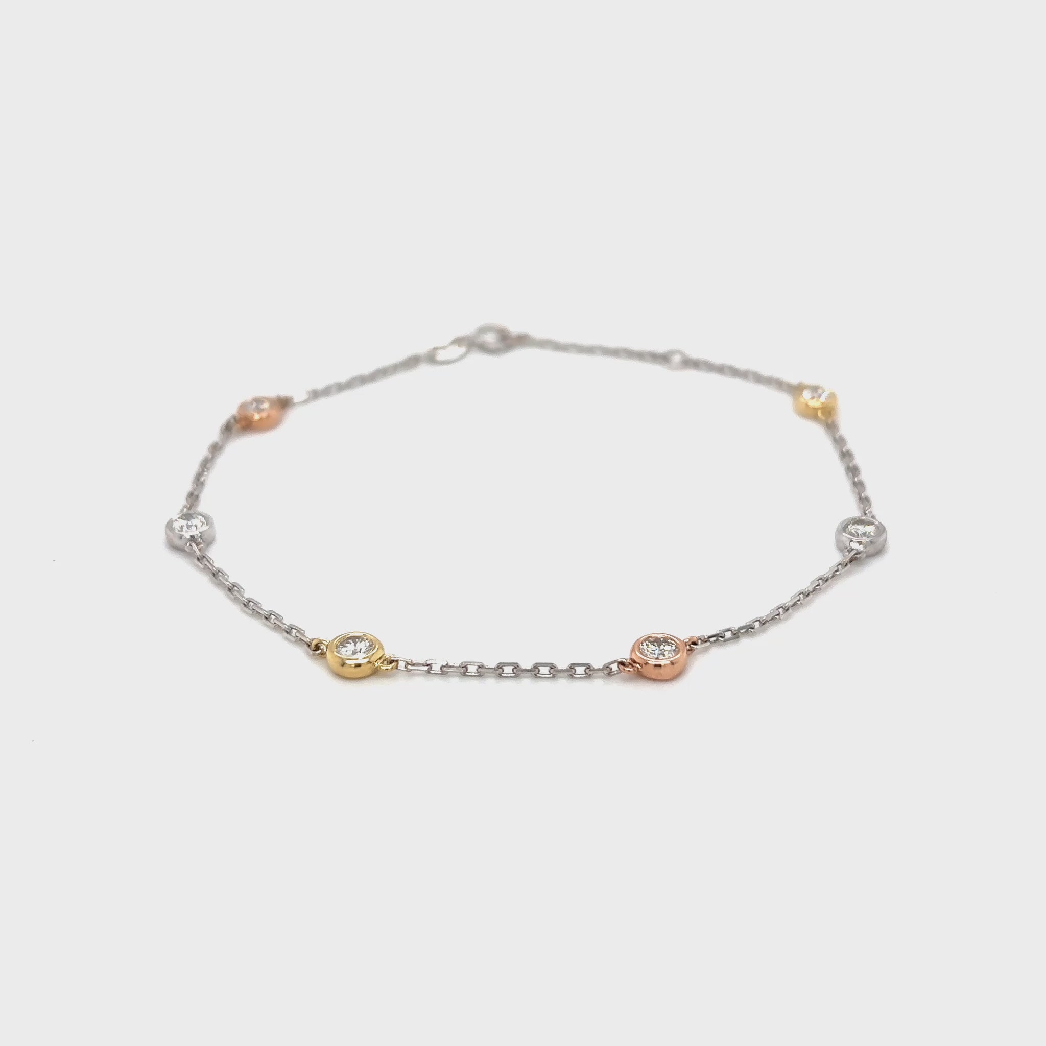 Three Tone Round Brilliant Cut Diamond Bracelet