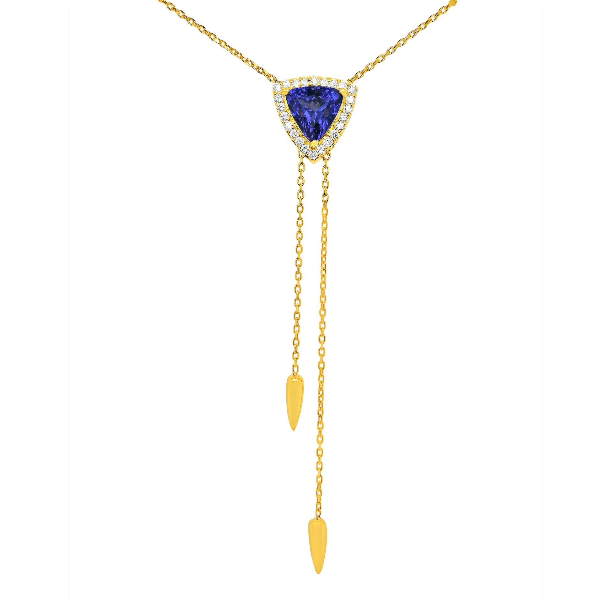 Trillion Tanzanite & Diamond Halo Pendant