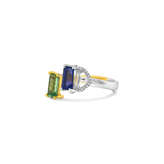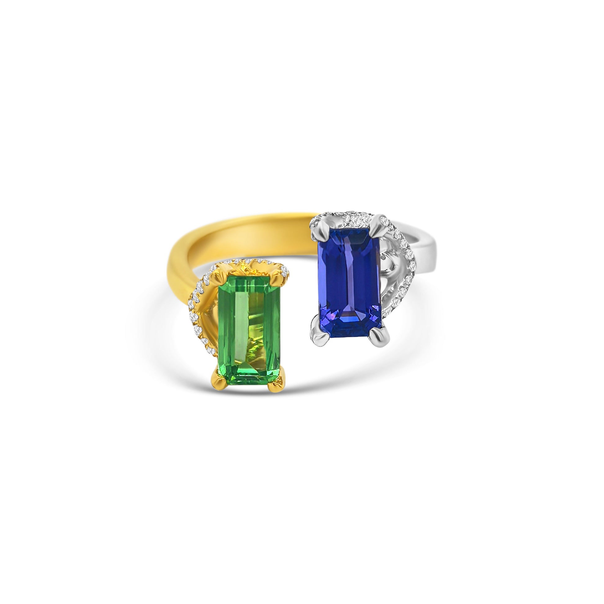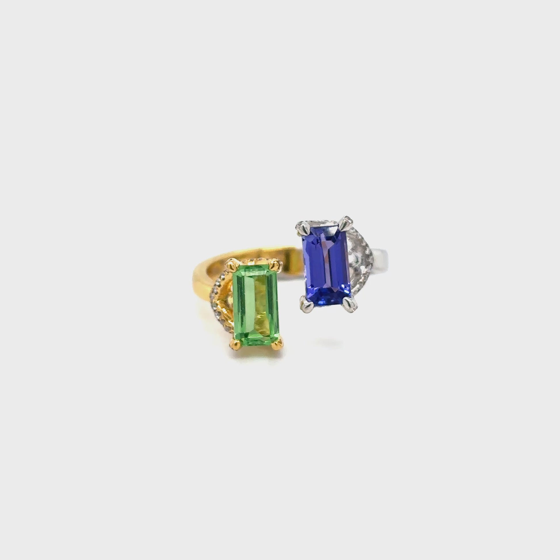 Two-toned Emerald Tanzanite, Tsavorite & Diamond Ring