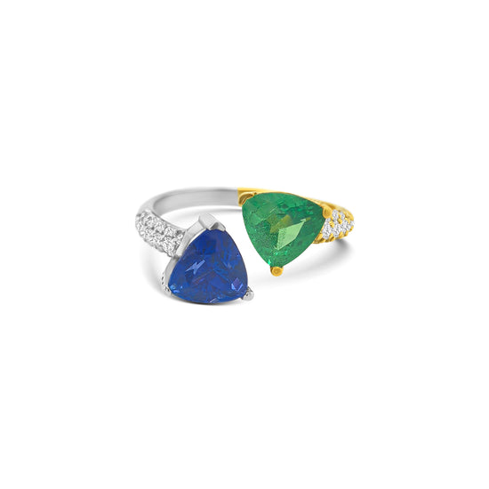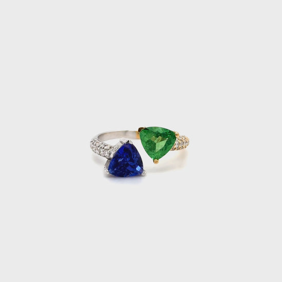 Two-toned Trillion Tanzanite, Tsavorite & Diamond Ring